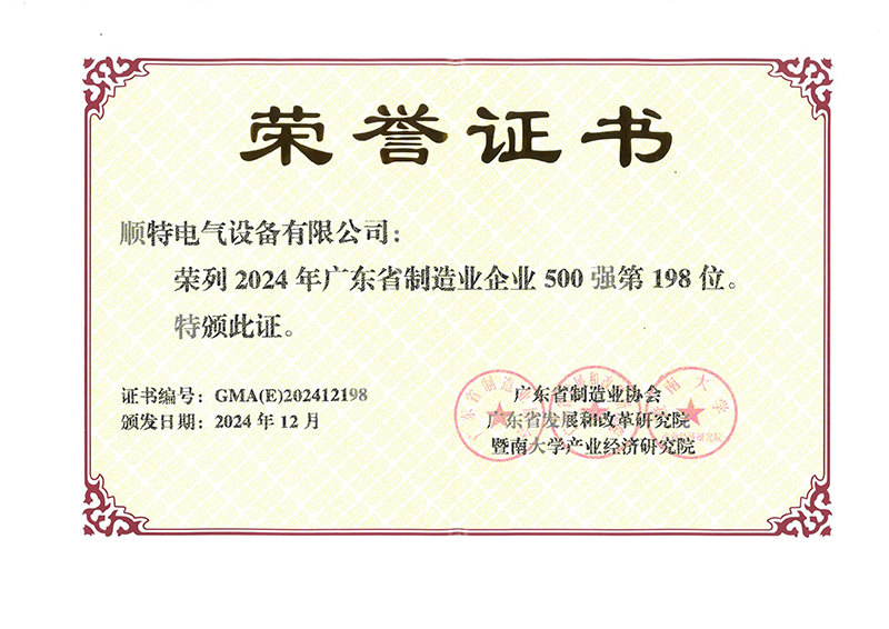 Recently, the "2024 Guangdong Top 500 Manufacturing Enterprises" list was officially released by the Guangdong Manufacturing Association in collaboration with the Guangdong Development and Reform Research Institute and the Jinan University Institute of Industrial Economics. SUNTEN secured its position at 198th place, recognized for its outstanding comprehensive strength and industry contributions.